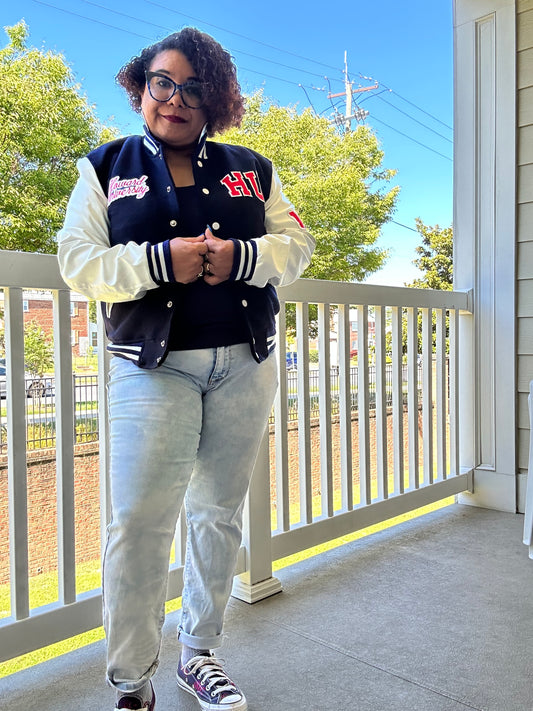 HU Letterman Varsity ጃኬት በፋክስ የቆዳ እጅጌ